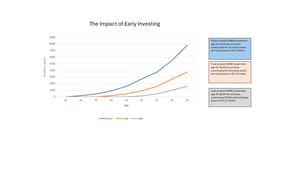 Not saving can be readily justified by reasons such as “I cannot afford to right now”, “I will start once the children are educated”, “the market is too uncertain at the moment” etc. but the implications of delaying are massive. As Warren Buffet is often quoted as saying “Spend what you have left after saving, not save what you have left after spending”.